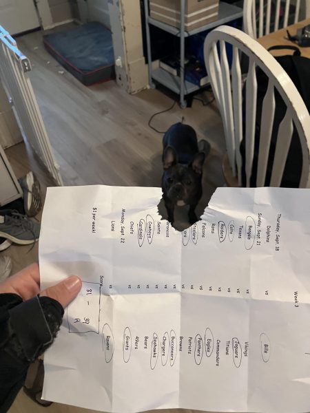Meet Ellie! She is a blue/brindle Frenchie–Boston mix with endless energy! She belongs to the Krieg family and her journey home was an adventure all by itself. She came all the way from Alabama to Chester, all thanks to a family friend who was gracious enough to bring her on the long drive.
